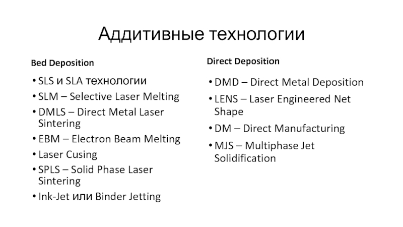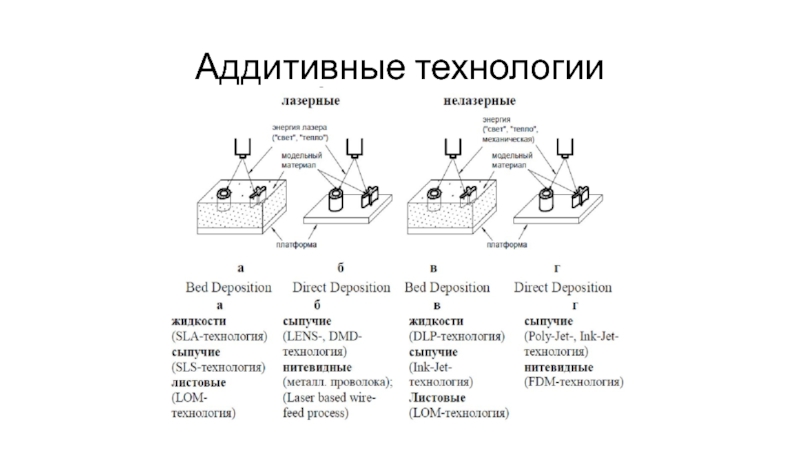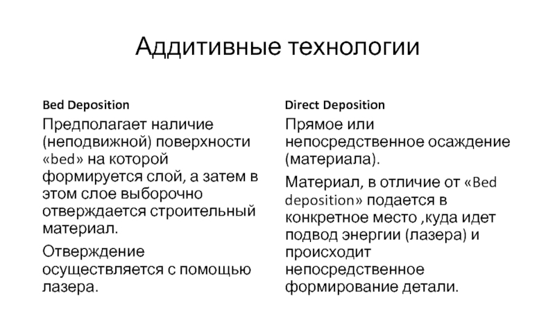 Материал, в отличие от «Bed deposition» подается в конкретное место ,куда идет подвод энергии (лазера) и происходит непосредственное формирование детали.