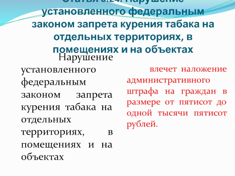 Нарушение установленного федеральным законом запрета курения табака на отдельных территориях, в помещениях и на объектах