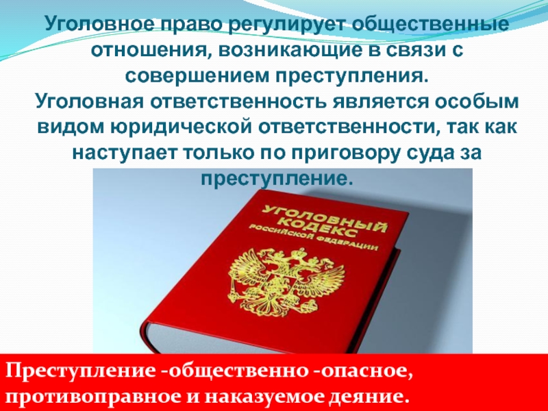 Преступление -общественно -опасное, противоправное и наказуемое деяние.