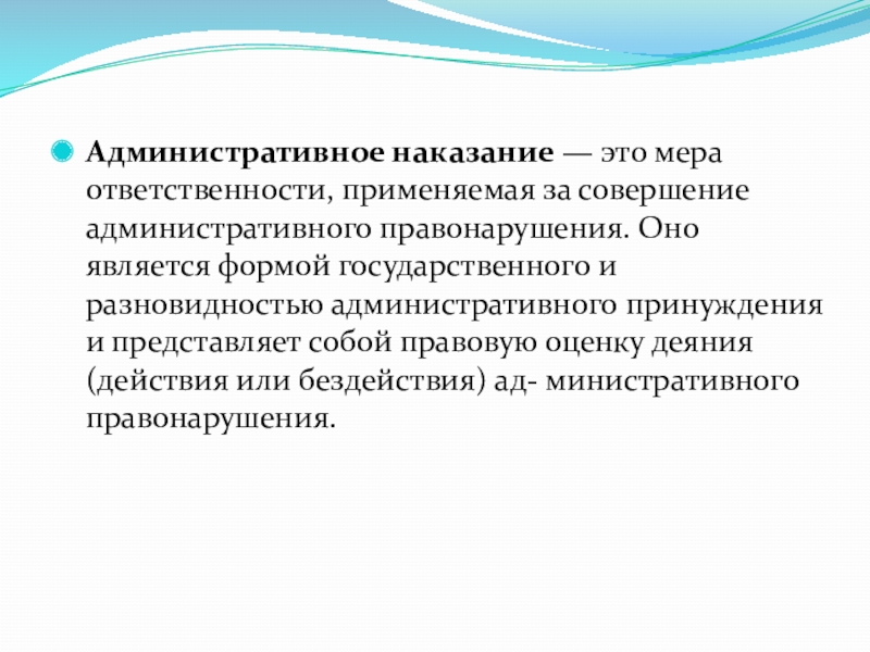 Административное наказание — это мера ответственности, применяемая за совершение административного правонарушения. Оно является формой государственного и разновидностью