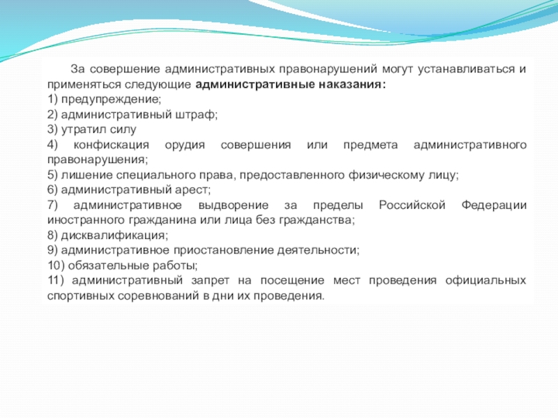 Административное наказание. Виды административных наказаний ....