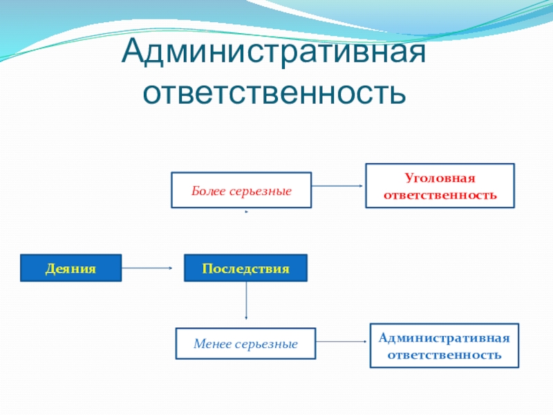 Административная ответственностьБолее серьезныеУголовная ответственностьДеяния Последствия Менее серьезные Административная ответственность