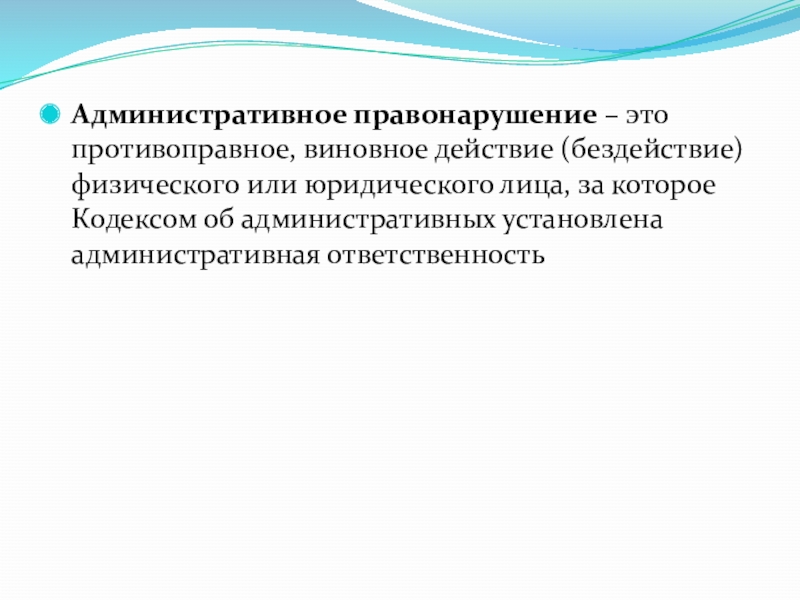 Слайд 6Административное правонарушение – это противоправное, виновное действие (бездействие) физического или