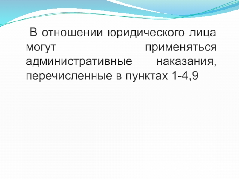 Слайд 13 В отношении юридического лица могут применяться административные наказания, перечисленные
