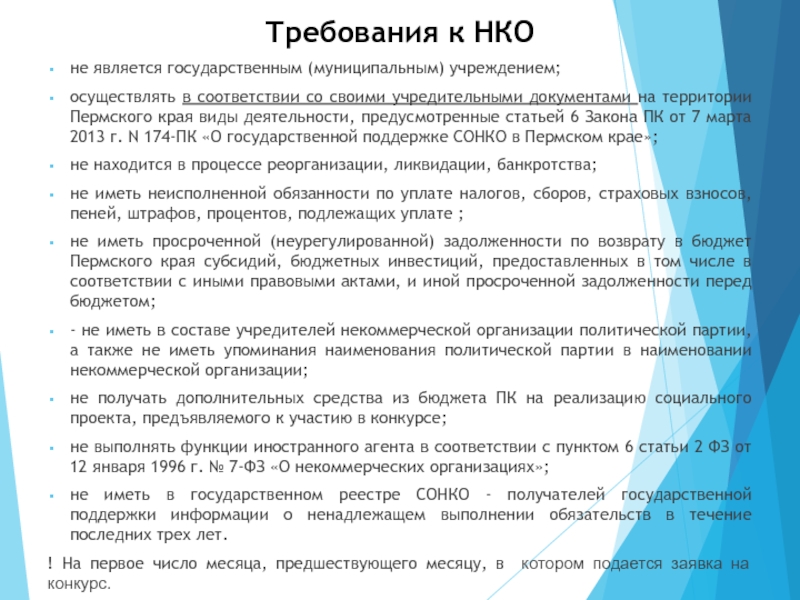 предусмотренные статьей 6 Закона ПК от 7 марта 2013 г. N 174-ПК «О государственной поддержке СОНКО в Пермском крае»;
