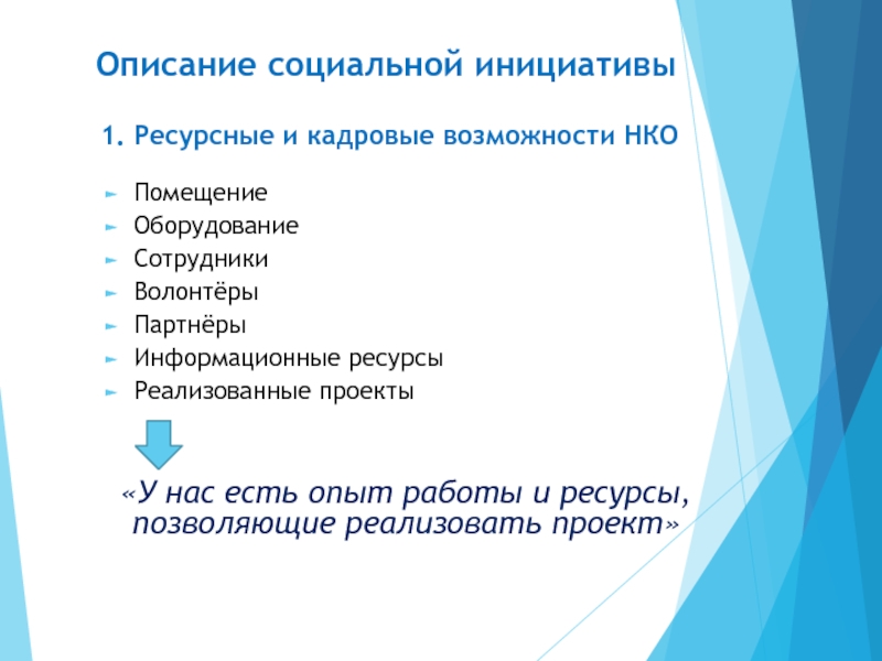 соглашения о намерениях с организацией-партнером в отношении реализации социального проекта с указанием конкретной информации о привлекаемом ресурсе