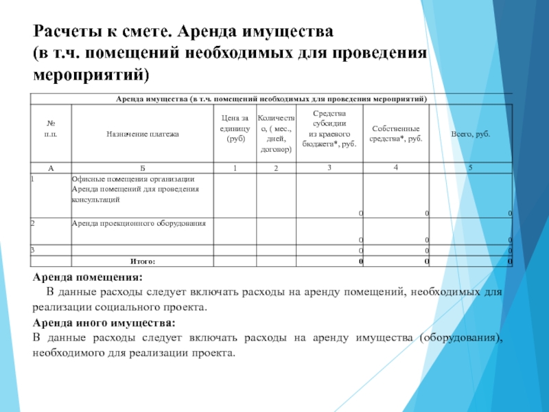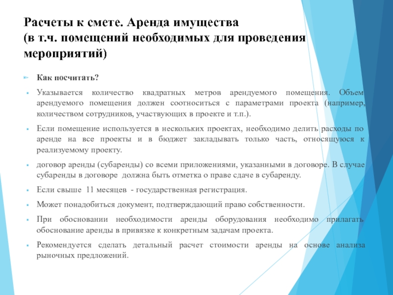 арендуемого помещения должен соотноситься с параметрами проекта (например, количеством сотрудников, участвующих в проекте и т.п.).
