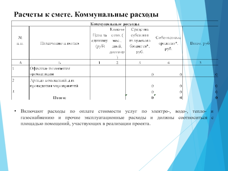 Слайд 54Расчеты к смете. Коммунальные расходы