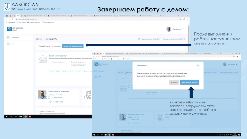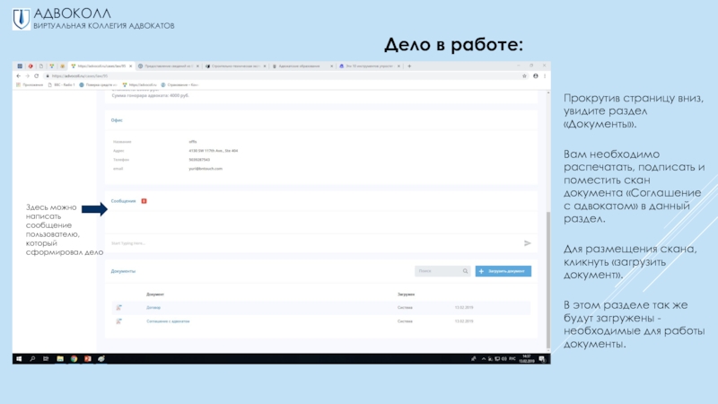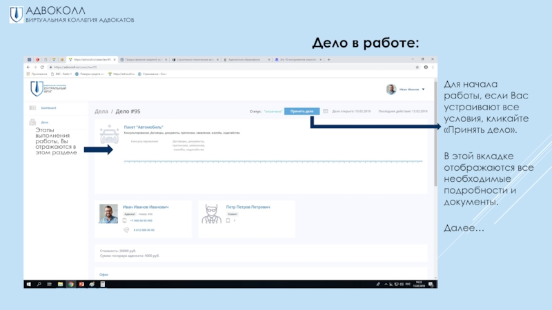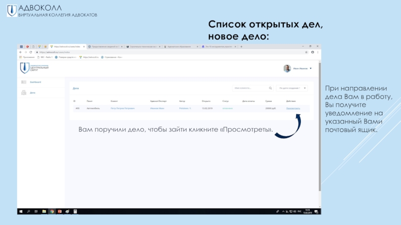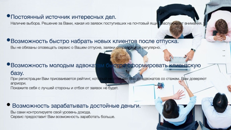 предлагаемыми заявками, через электронный почтовый ящик;-выбор всегда за вами – акцептовать заявку на принятие дела или нет.