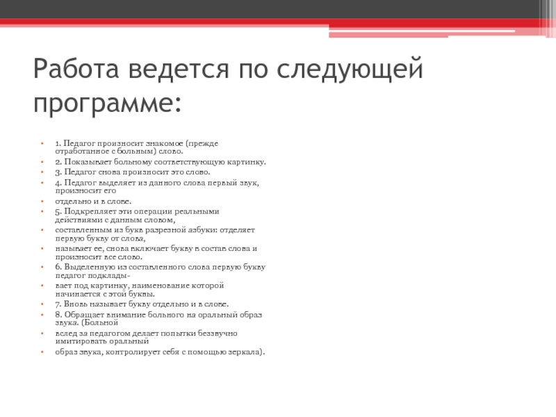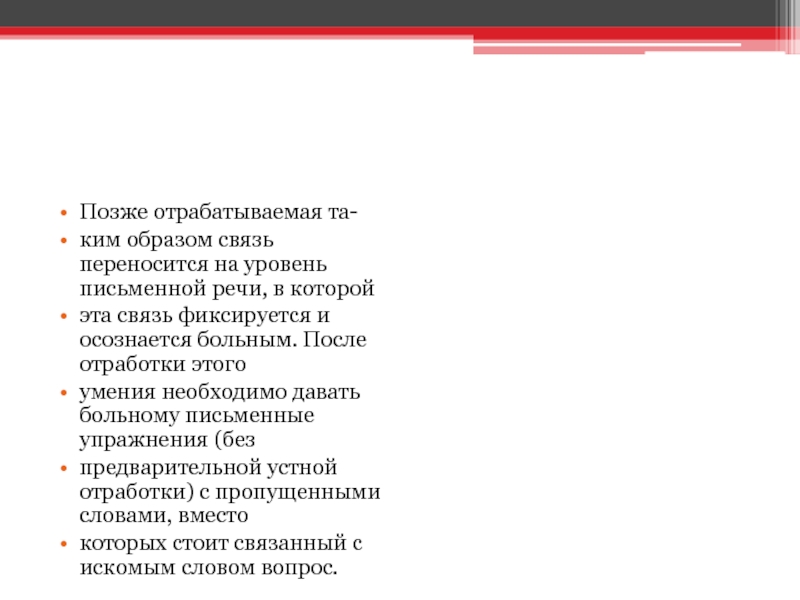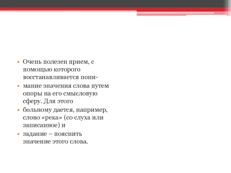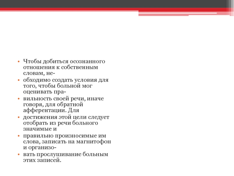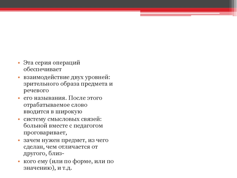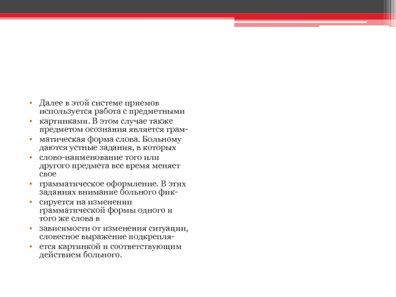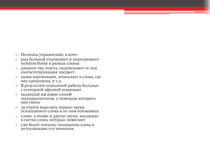 ми, отображающими смысл отрабатываемых слов, могут привести больного