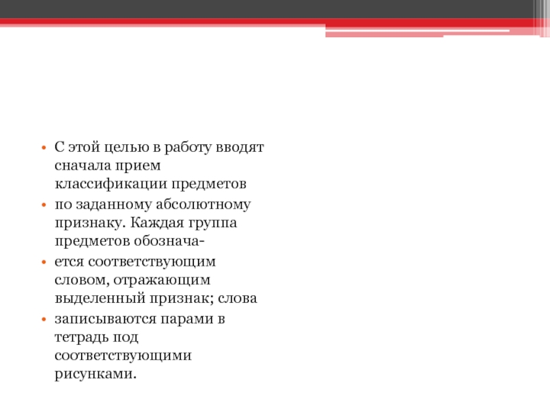 Слайд 82С этой целью в работу вводят сначала прием классификации предметов