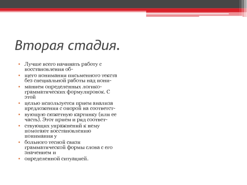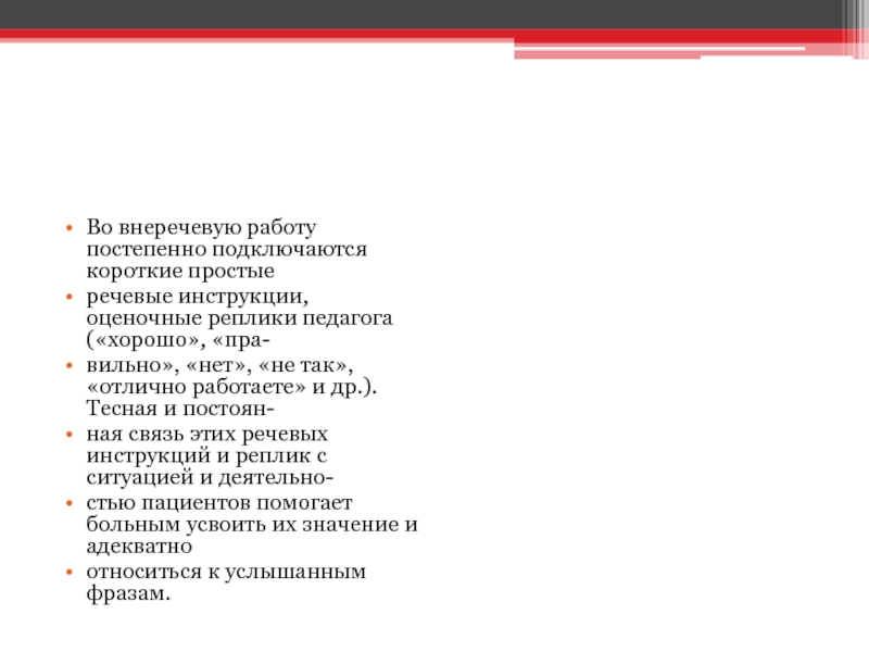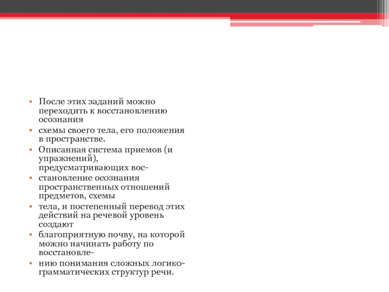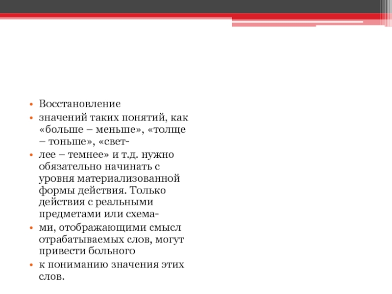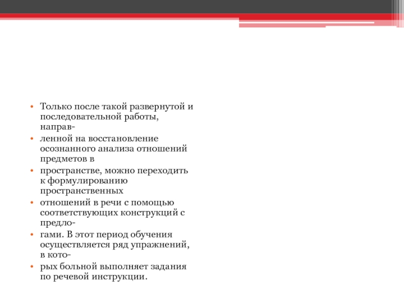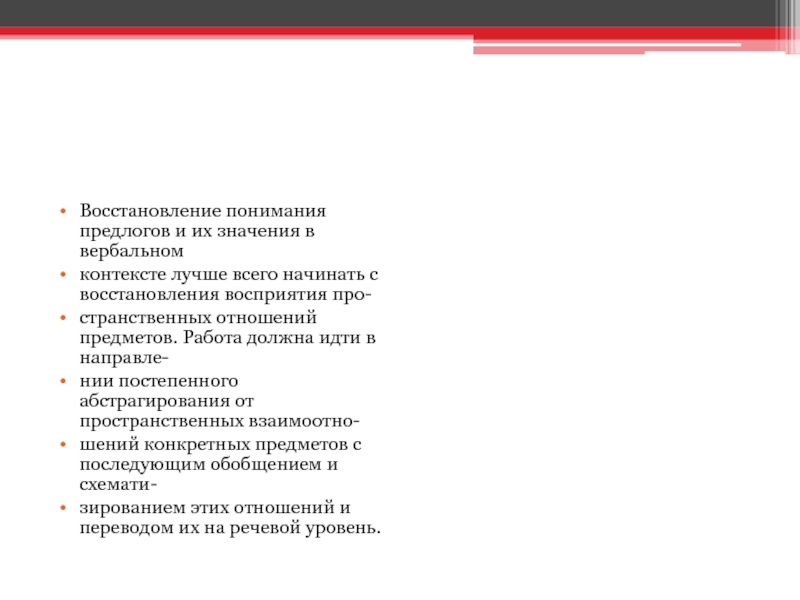 Слайд 84Восстановление понимания предлогов и их значения в вербальном