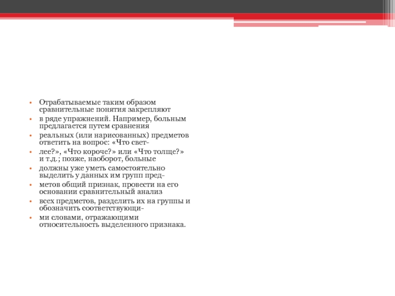 лее?», «Что короче?» или «Что толще?» и т.д.; позже, наоборот, больные