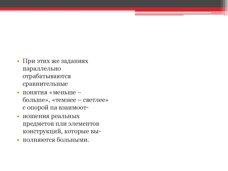 значений таких понятий, как «больше – меньше», «толще – тоньше»,