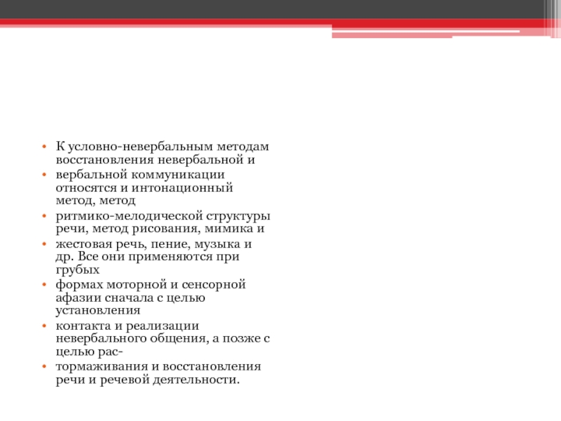 Слайд 13К условно-невербальным методам восстановления невербальной и