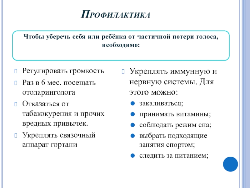 Чтобы уберечь себя или ребёнка от частичной потери голоса, необходимо: