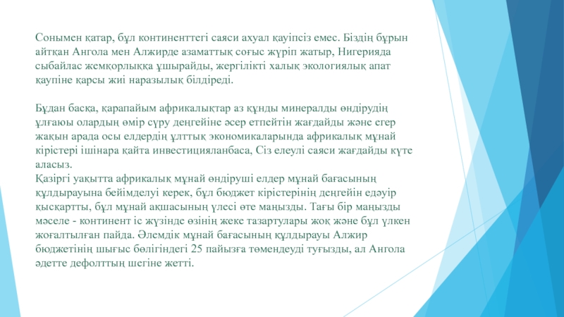 Слайд 26Сонымен қатар, бұл континенттегі саяси ахуал қауіпсіз емес. Біздің бұрын