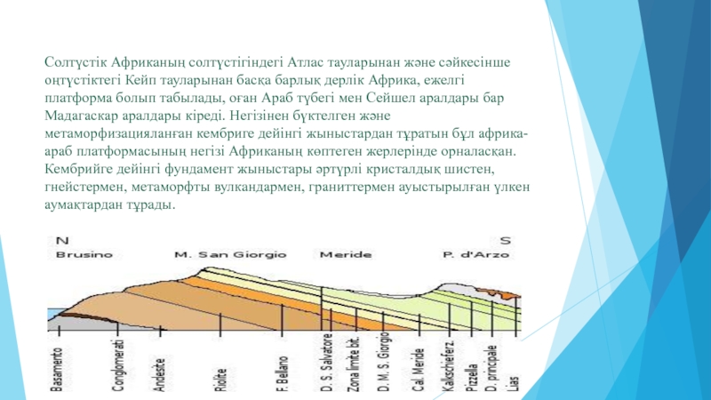 Слайд 31 Африканың негізі метаморфтық қабаттардан және кембриге дейінгі граниттерінен тұрады,