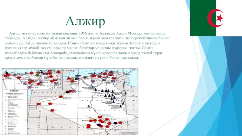 Слайд 5  Алғаш рет өнеркәсіптік мұнай қорлары 1956 жылы Алжирде