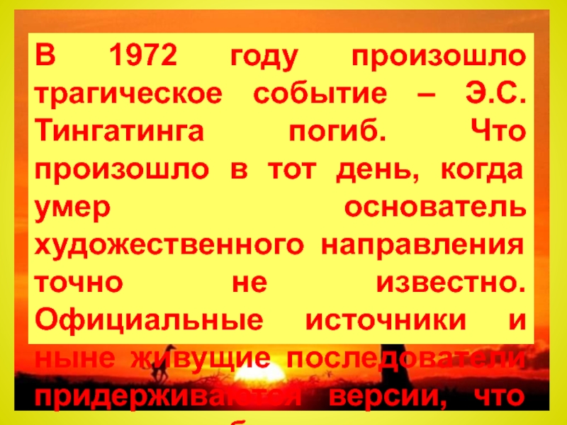 Слайд 9В 1972 году произошло трагическое событие – Э.С. Тингатинга погиб.
