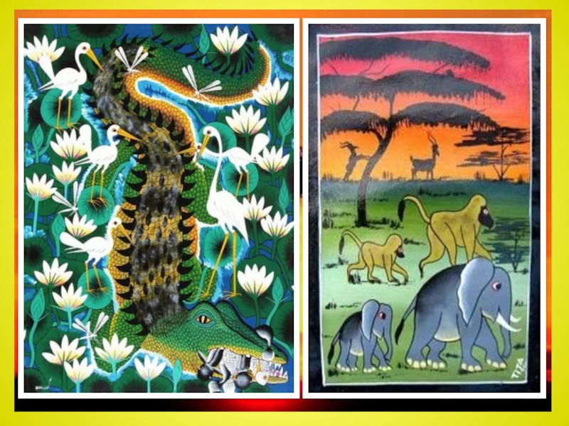 Слайд 10.Живопись тинга-тинга, основанная простым крестьянином без образования получила в Танзании