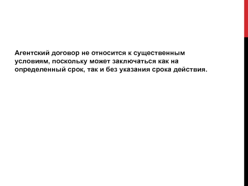 Слайд 10Агентский договор не относится к существенным условиям, поскольку может заключаться