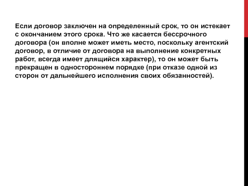 Слайд 11Если договор заключен на определенный срок, то он истекает с