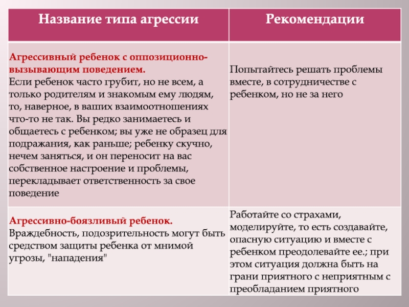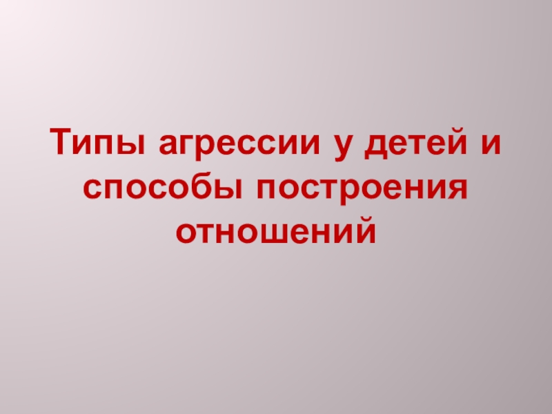Слайд 19Типы агрессии у детей и способы построения отношений