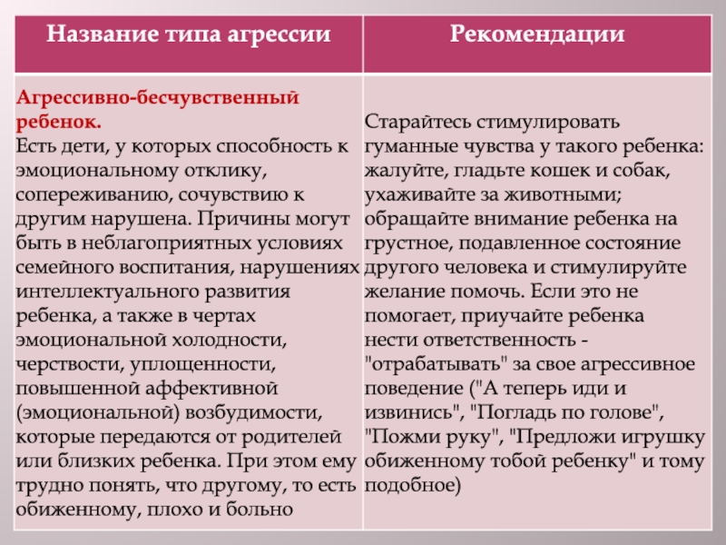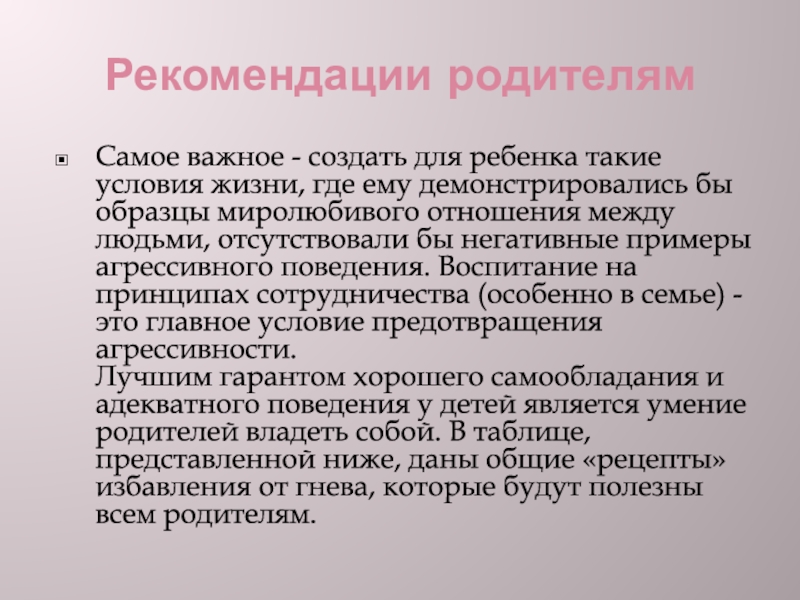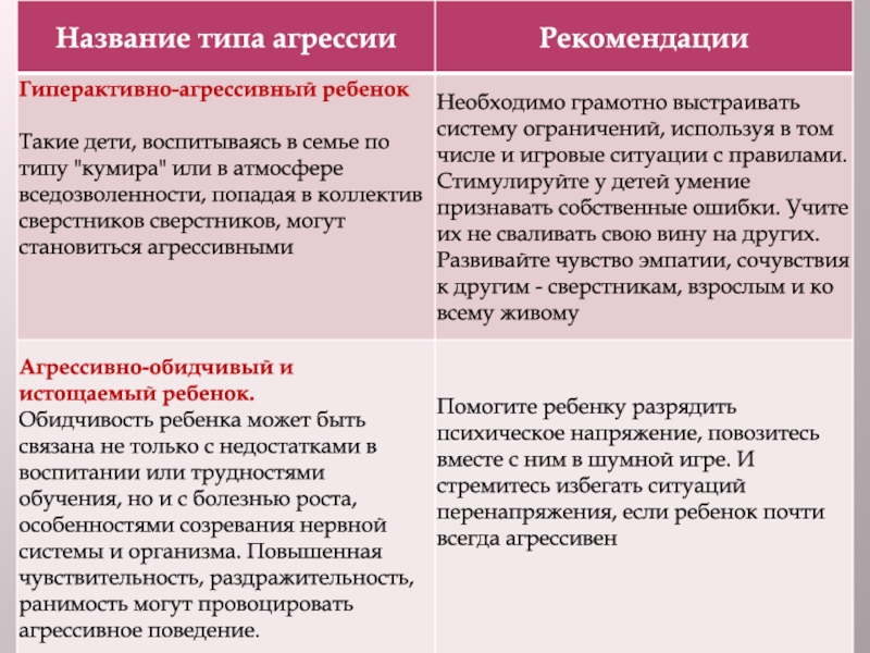бы негативные примеры агрессивного поведения. Воспитание на принципах сотрудничества (особенно в семье) - это главное условие предотвращения агрессивности.