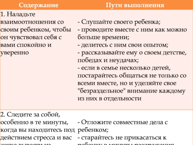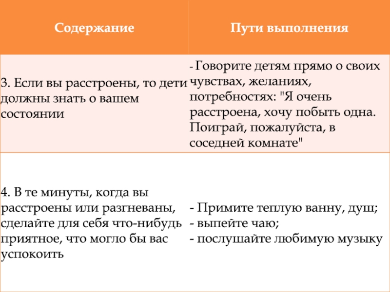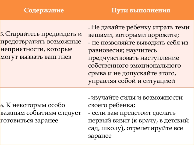 Лучшим гарантом хорошего самообладания и адекватного поведения у детей является умение родителей владеть собой. В таблице, представленной ниже, даны общие «рецепты» избавления от гнева, которые будут полезны всем родителям.