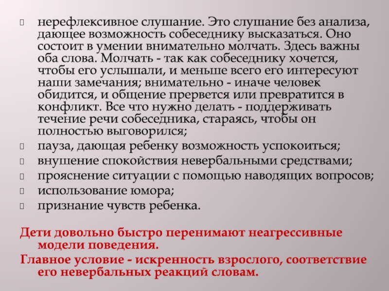 Слайд 18нерефлексивное слушание. Это слушание без анализа, дающее возможность собеседнику высказаться.