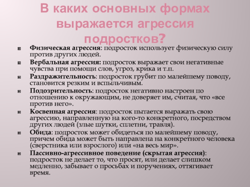 Слайд 4В каких основных формах выражается агрессия подростков?