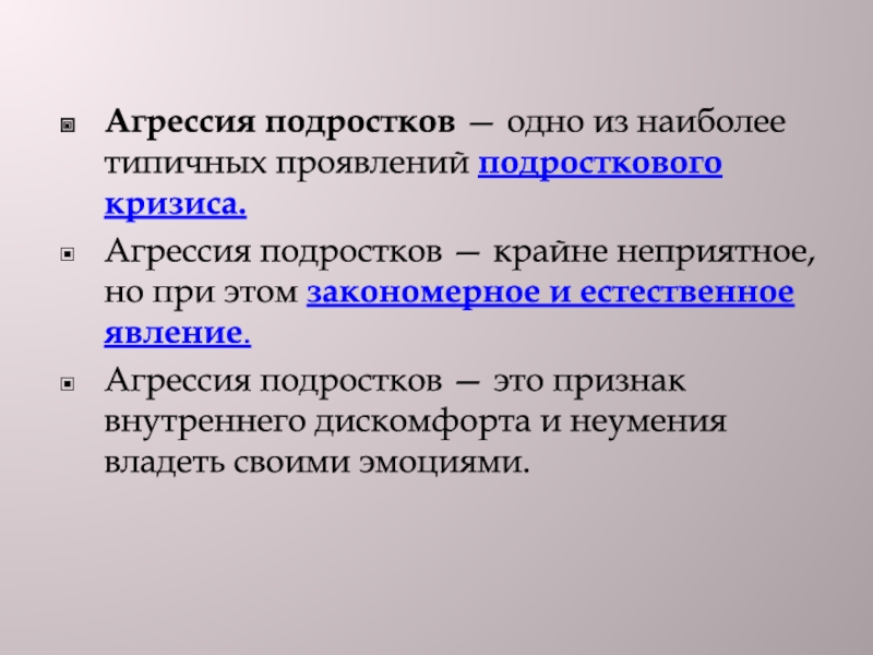 Слайд 3Агрессия подростков — одно из наиболее типичных проявлений подросткового кризиса.