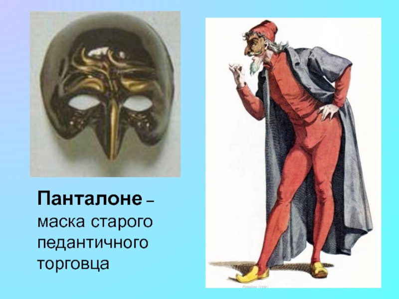 Слайд 18Панталоне – маска старого педантичного торговца
