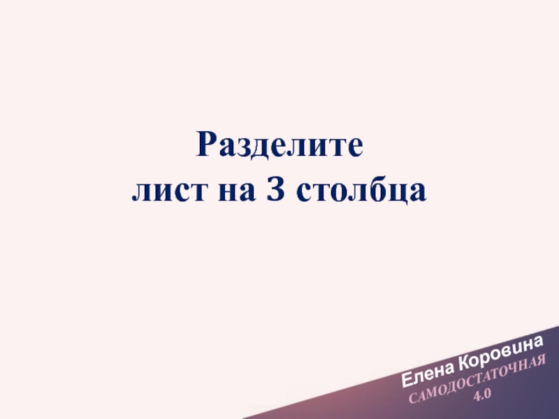 Елена Коровина САМОДОСТАТОЧНАЯ 4.0Разделите  лист на 3 столбца