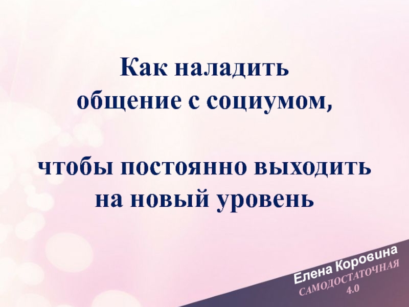 Елена Коровина САМОДОСТАТОЧНАЯ 4.0Как наладить  общение с социумом,   чтобы постоянно выходить  на новый