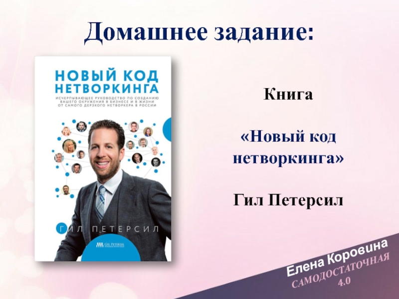Елена Коровина САМОДОСТАТОЧНАЯ 4.0Домашнее задание:Книга   «Новый код нетворкинга»  Гил Петерсил