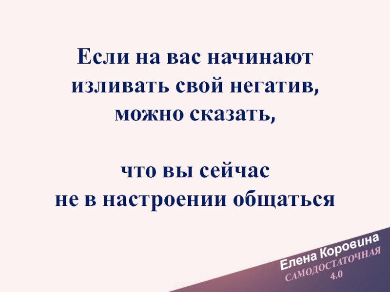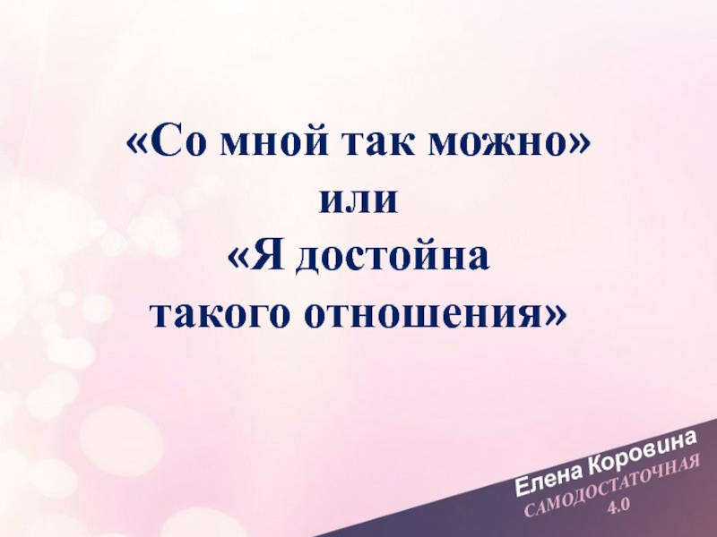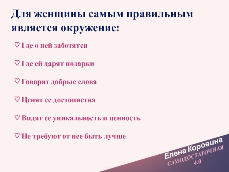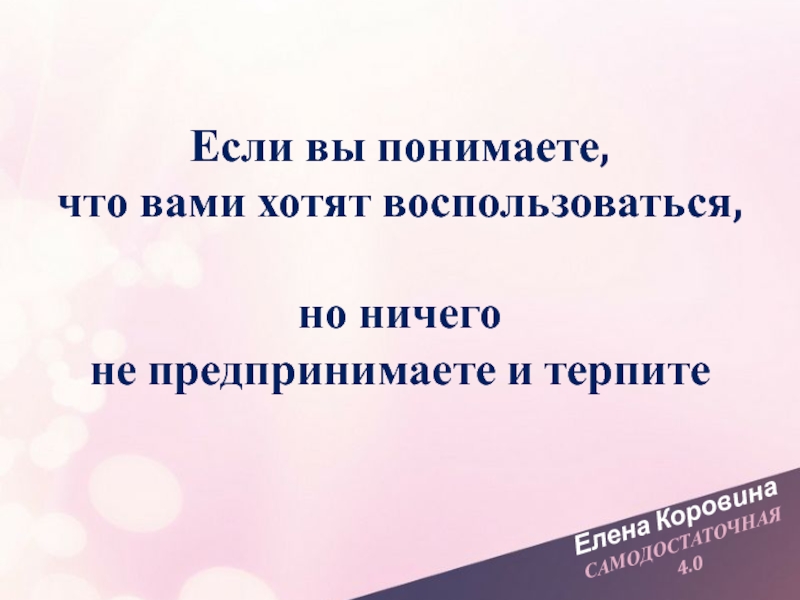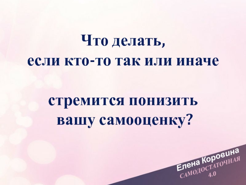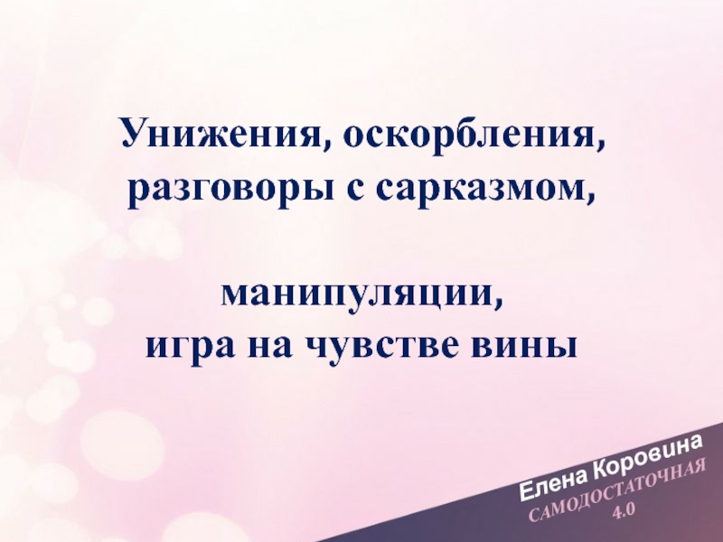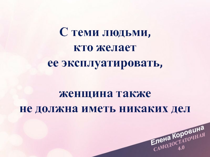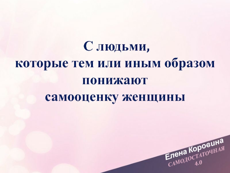 Елена Коровина САМОДОСТАТОЧНАЯ 4.0 С людьми,  которые тем или иным образом понижают  самооценку женщины
