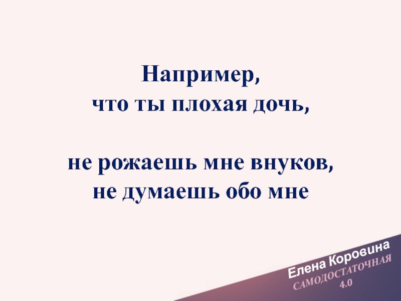 Елена Коровина САМОДОСТАТОЧНАЯ 4.0 Список можно  продолжать долго,  но из этого наглядно видно