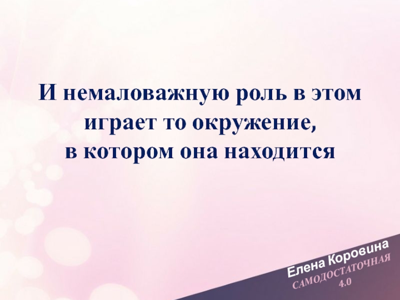 Елена Коровина САМОДОСТАТОЧНАЯ 4.0И немаловажную роль в этом играет то окружение,  в котором она находится