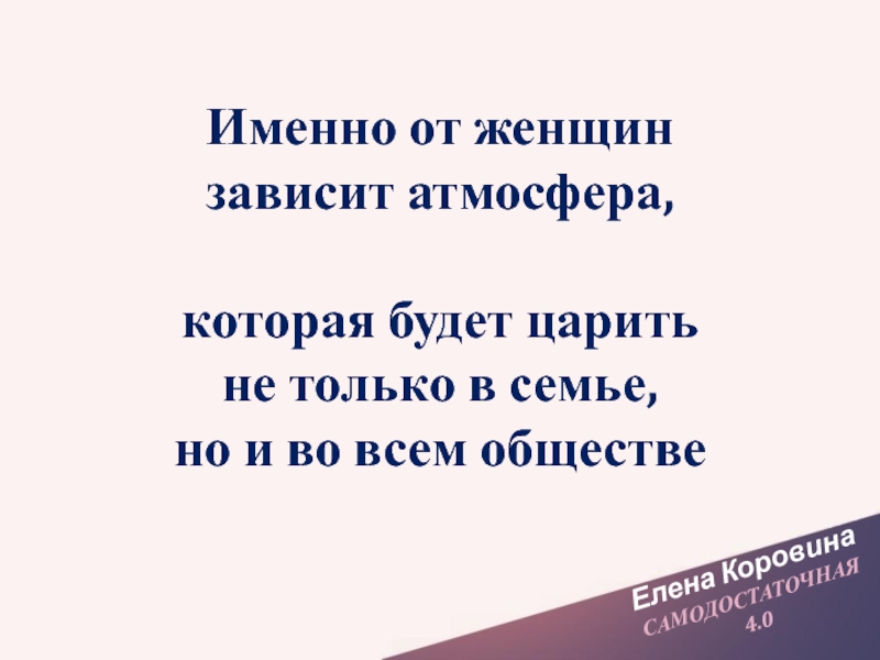 Елена Коровина САМОДОСТАТОЧНАЯ 4.0Именно от женщин зависит атмосфера,  которая будет царить не только в семье, но