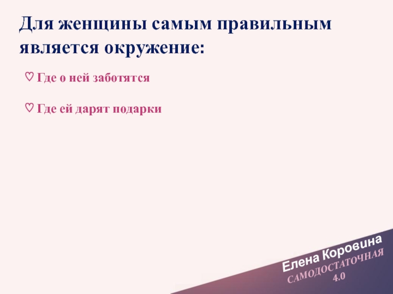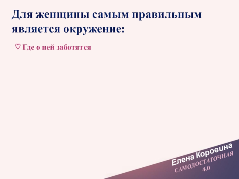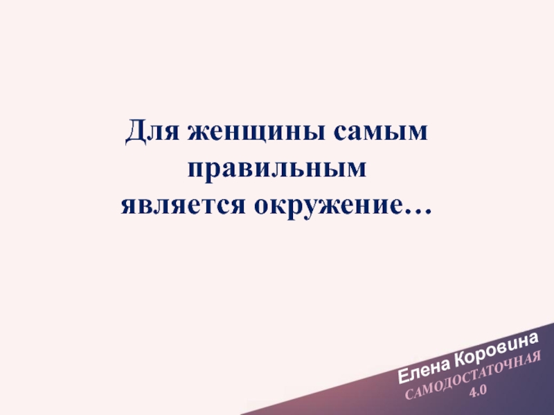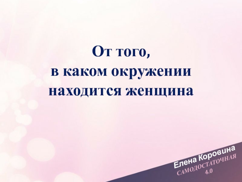 Елена Коровина САМОДОСТАТОЧНАЯ 4.0От того,  в каком окружении  находится женщина