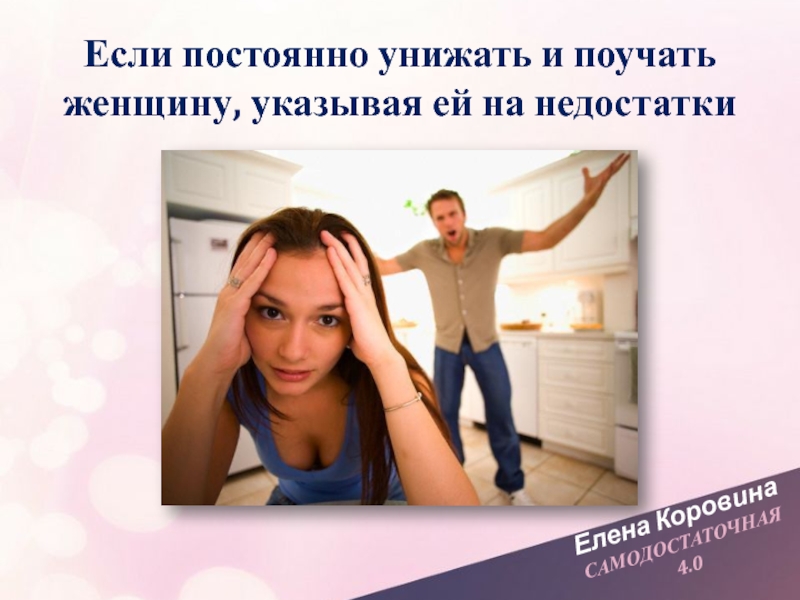 Елена Коровина САМОДОСТАТОЧНАЯ 4.0Если постоянно унижать и поучать женщину, указывая ей на недостатки