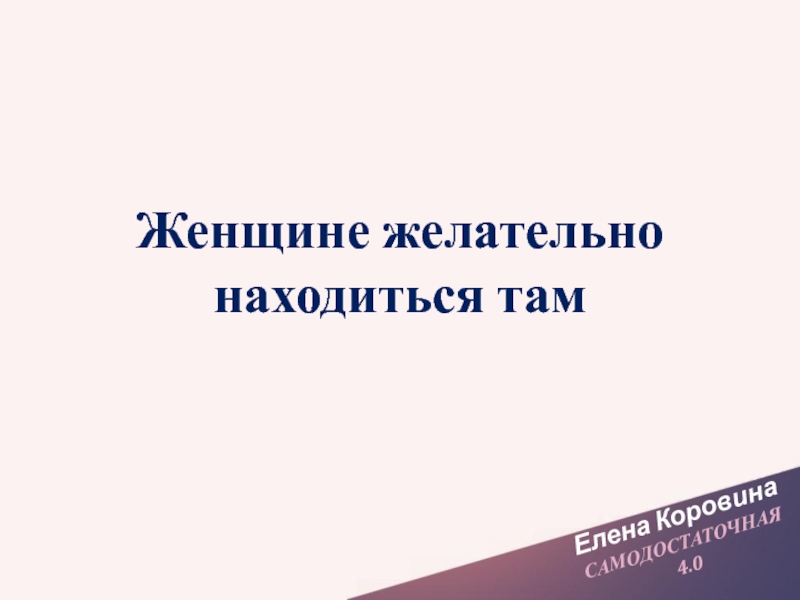 Елена Коровина САМОДОСТАТОЧНАЯ 4.0«Женщина и Социум»