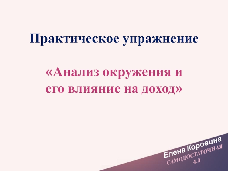 Елена Коровина САМОДОСТАТОЧНАЯ 4.0Практическое упражнение «Анализ окружения иего влияние на доход»