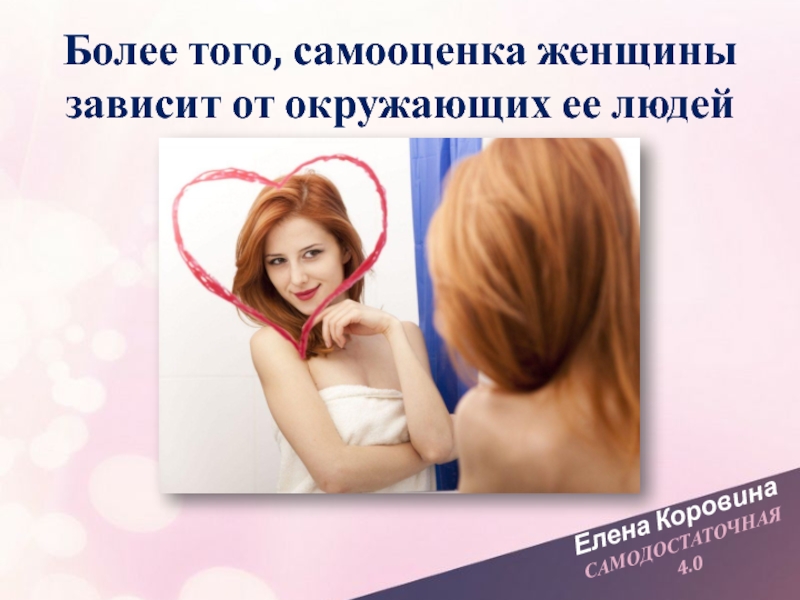 Елена Коровина САМОДОСТАТОЧНАЯ 4.0Более того, самооценка женщины зависит от окружающих ее людей