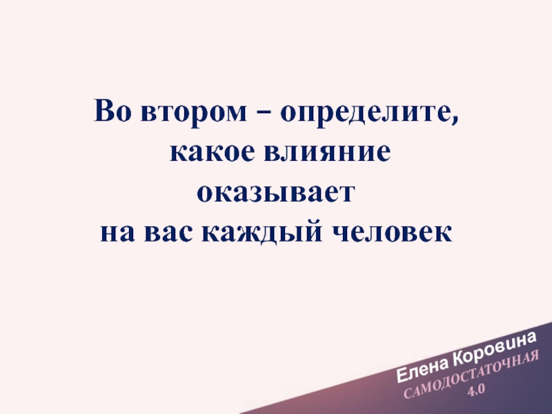 Елена Коровина САМОДОСТАТОЧНАЯ 4.0Во втором – определите,  какое влияние  оказывает  на вас каждый человек