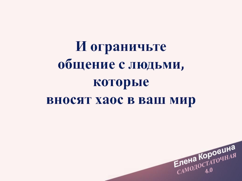 Елена Коровина САМОДОСТАТОЧНАЯ 4.0И ограничьте  общение с людьми,  которые вносят хаос в ваш мир