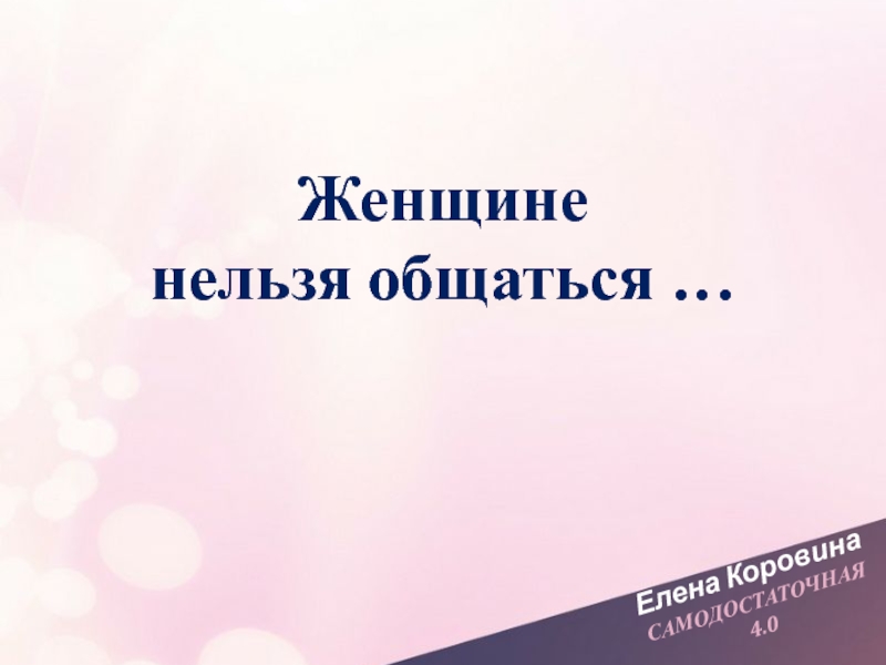 Елена Коровина САМОДОСТАТОЧНАЯ 4.0Женщине  нельзя общаться …