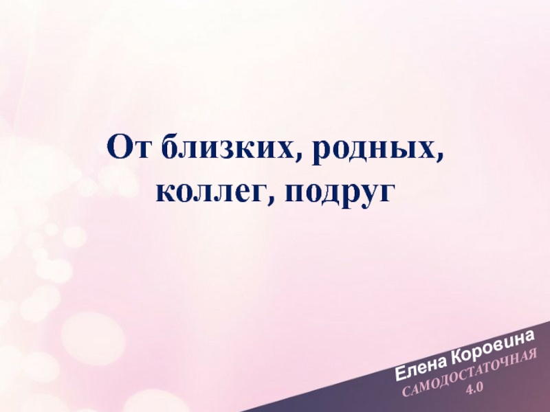 Елена Коровина САМОДОСТАТОЧНАЯ 4.0От близких, родных,  коллег, подруг